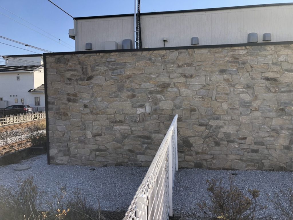 建物のアイキャッチとしてブランディングを促進する石張り発泡スチロールの塀